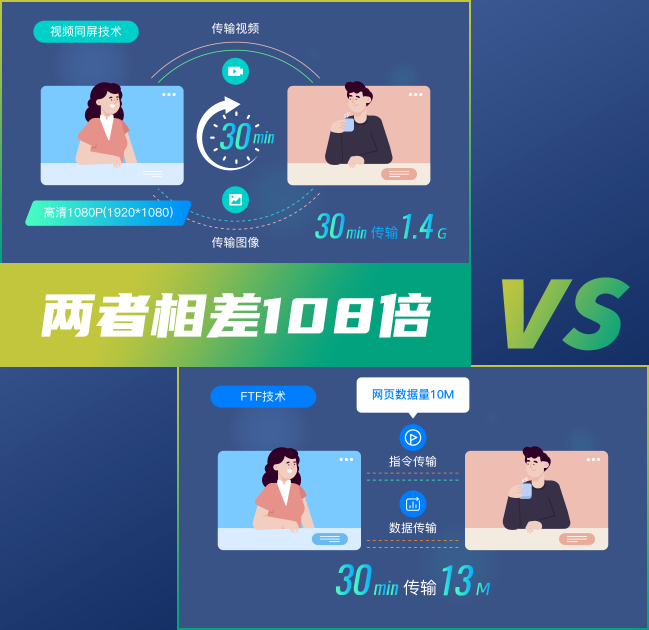 经研究试验,通过传输网页操作指令或网页操作产生的结果数据,在另一侧网页相同的浏览与执行效果,但该方式明显降低了数据传输量,且提升了画面质量,另外,WebRTC是一个支持网页浏览器进行实时语音对话或视频对话的API,使用它可在网页间直接建立语音通信,两者相结合,一种非视频同屏技术由此而诞生!原理非常简单,但具有相当高的实用价值,主要表现为传输数据小、画质无损,同时支持双向操作。