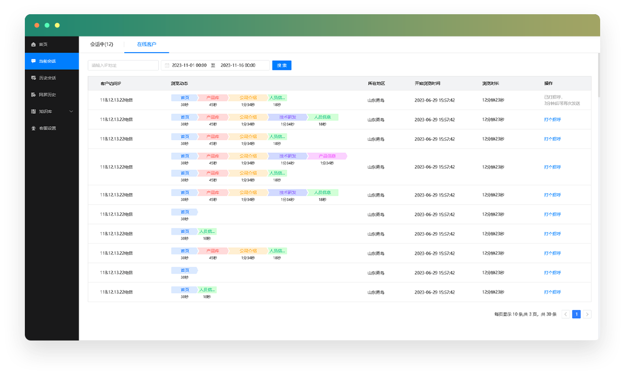 跟踪客户浏览踪迹