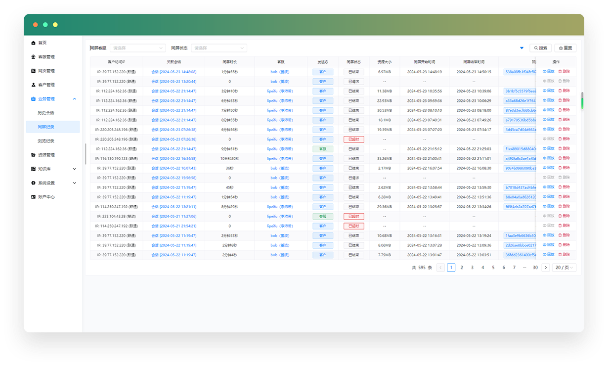 在为客户提供同屏交流服务时,记录交流全过程,防篡